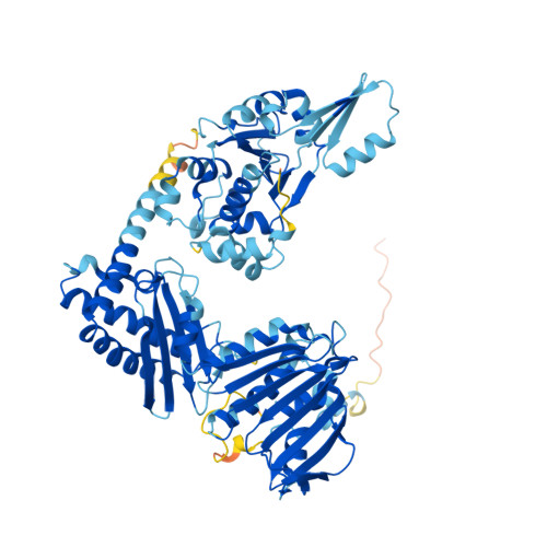 Computed Structure Models provide per-residue confidence score (pLDDT) between 0 and 100. Some regions below 50 pLDDT may be unstructured in isolation.